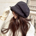 Women’s Winter Suede Bucket Hat – Thick Velvet Lamb Hair Beret with Wide Brim for Warmth & Windproof