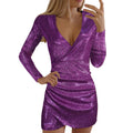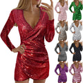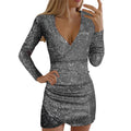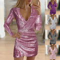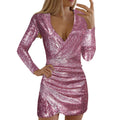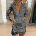 Women's Sexy Long Sleeve V-Neck Sequins Dress