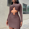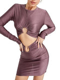 Women's Skirt Slim Fit Midriff Outfit Metal Buckle Long Sleeve Short Dress