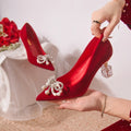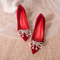 Women's Spring Autumn Block Heel Shoes Chinese Pointed Toe Shallow Mouth Beaded Bow plus Size Comfortable Non-Slip Fashion Pumps