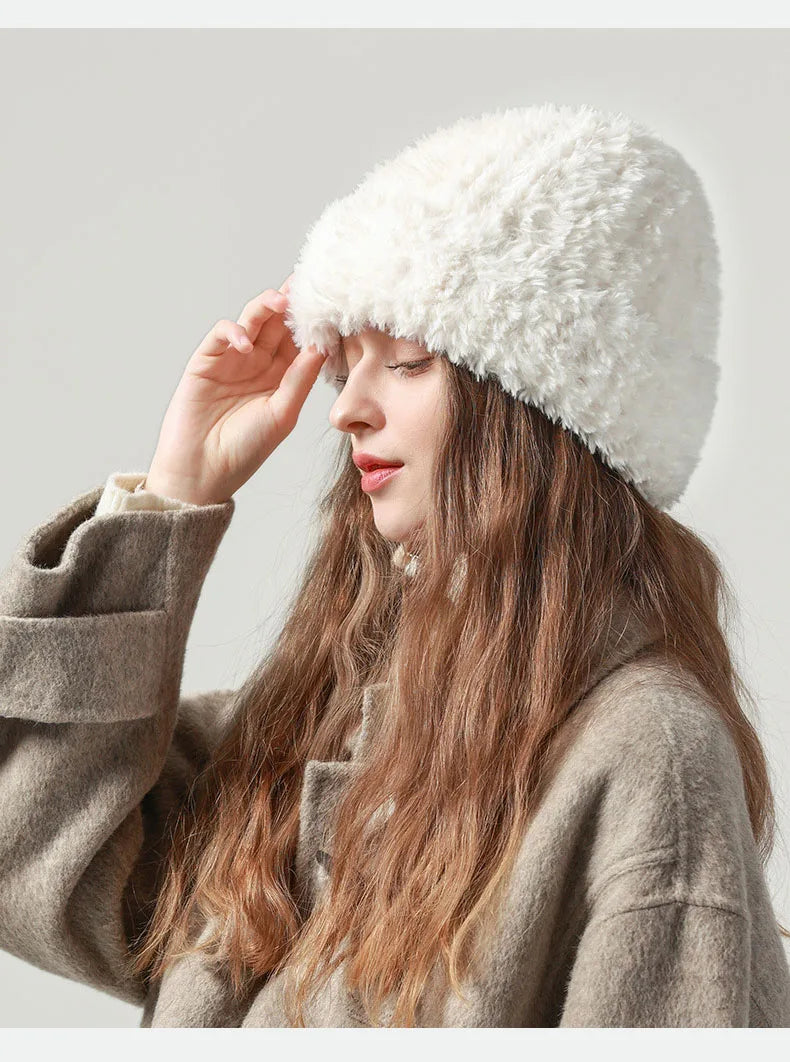 Women's Winter Versatile Knitted Woolen Warm White Plush Hat